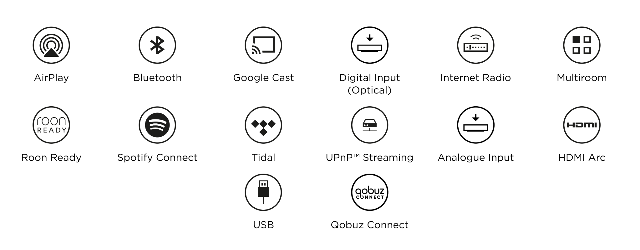 USB bellekler – maks. 128 GB. - Akış: Apple AirPlay 2, Bluetooth, Chromecast, İnternet Radyosu, Qobuz, Roon Ready, Spotify®Connect, TIDAL, UPnP™